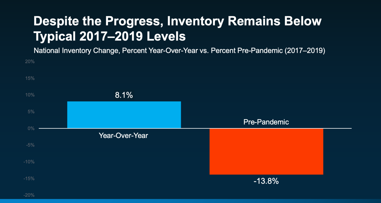 Recent data proves that, even though inventory is up compared to last year, it’s still nearly 14% lower than it was during the last normal housing market (2017-2019):