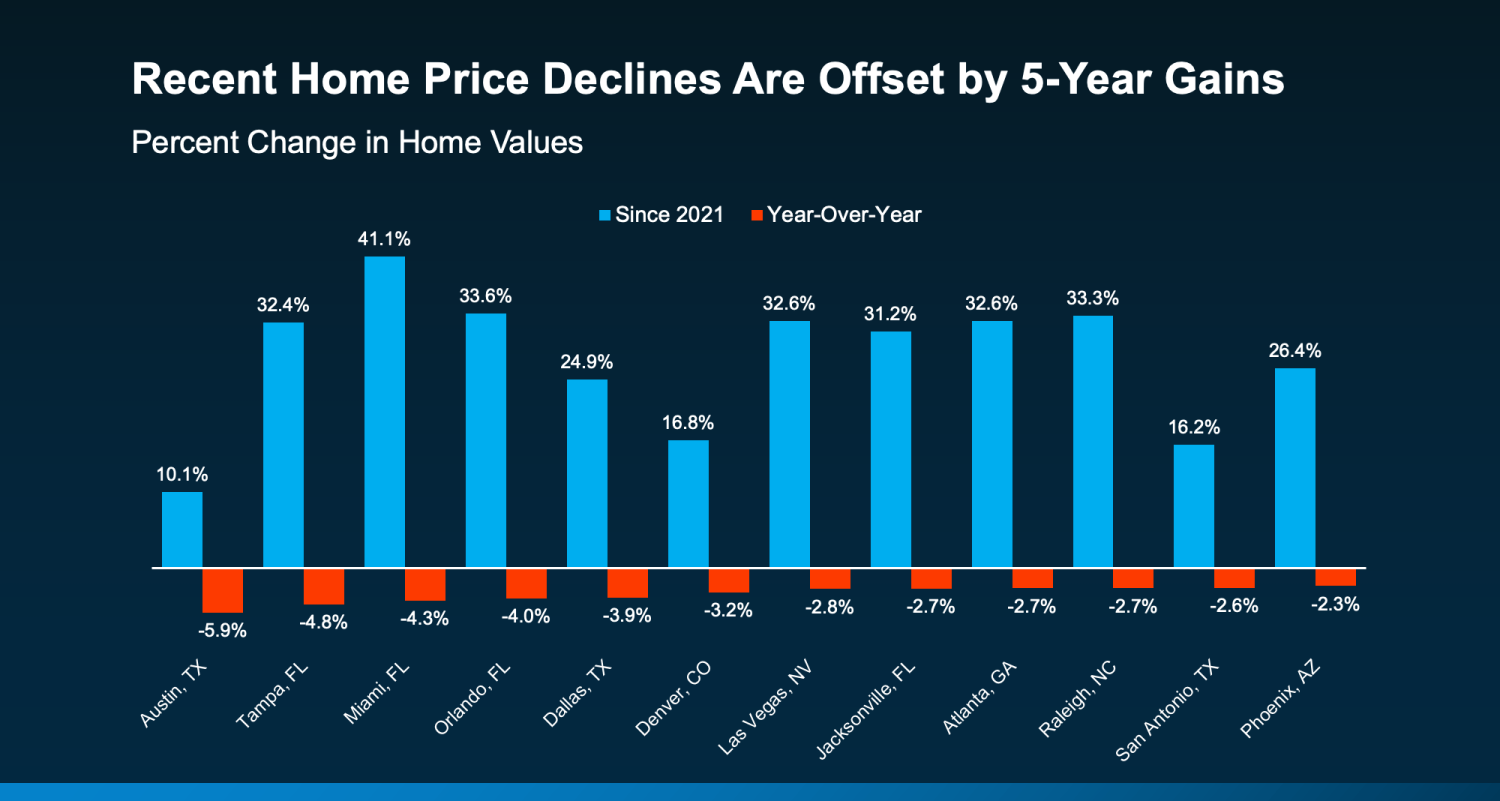 And even in the markets experiencing mild declines, the drops aren’t enough to cancel out the big gains most homeowners have seen in the last 5 years (see graph below):