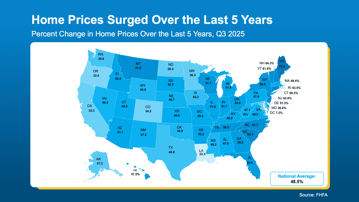 But don’t just take their word for it, see for yourself. When you zoom out and look at how much home prices have grown over the past five years, it’s a lot easier to understand why so many homeowners are still in such great shape.