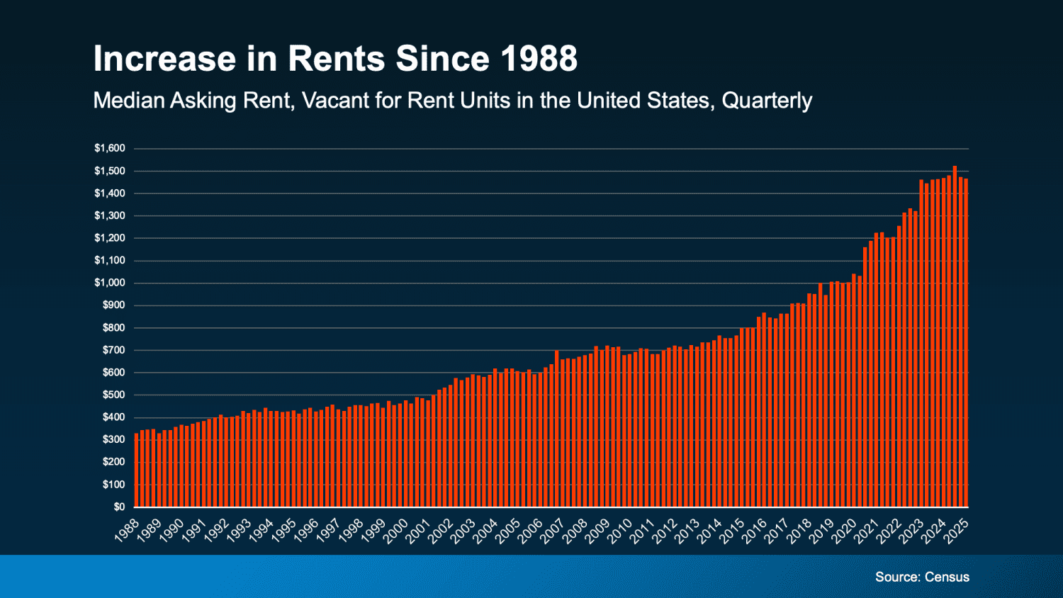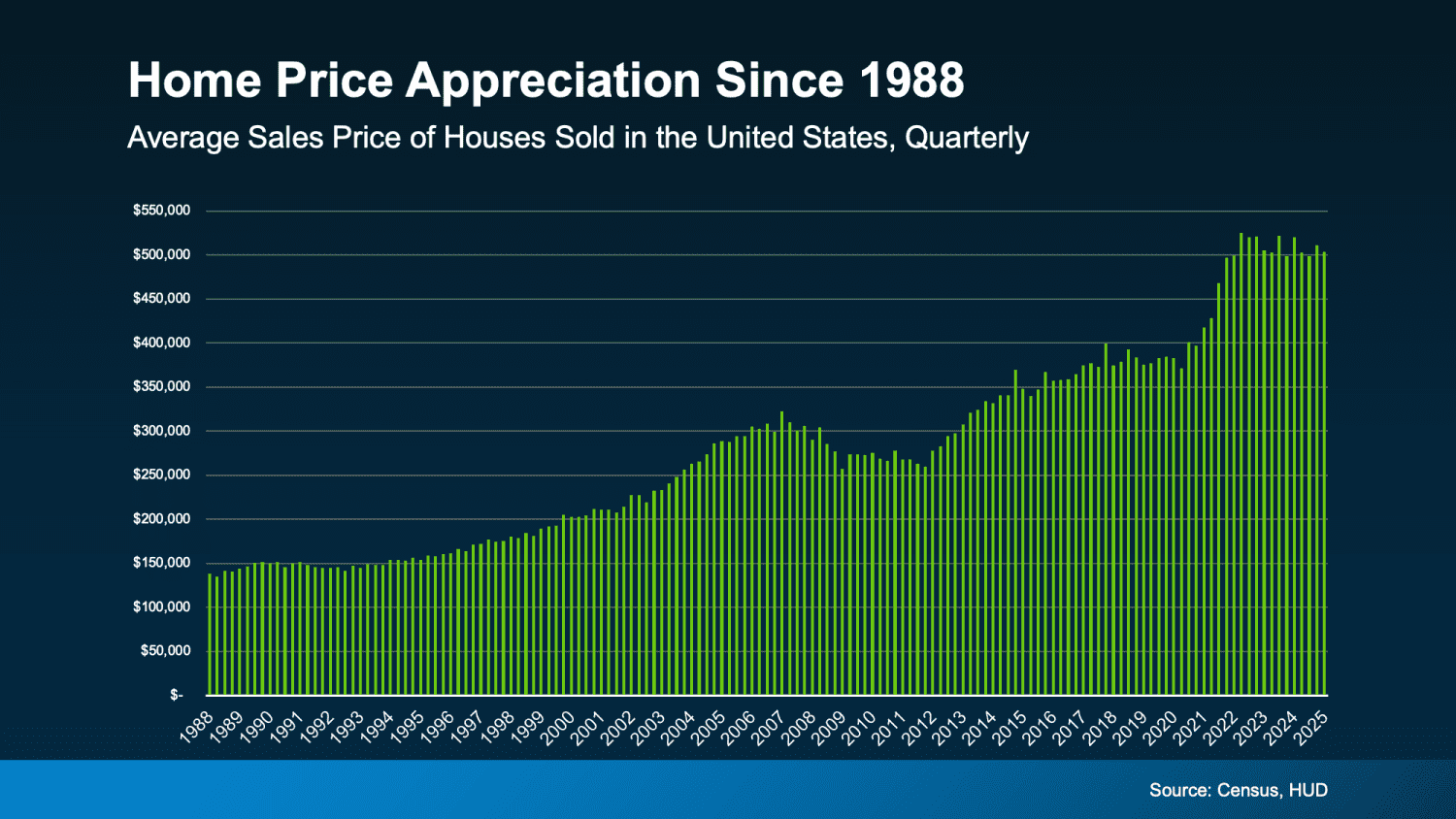 Why? Home prices typically rise over time, which means the longer you wait, the more expensive it is to buy. And even in some markets where home prices are softening today, the overall long-term trend speaks for itself (see graphbelow):