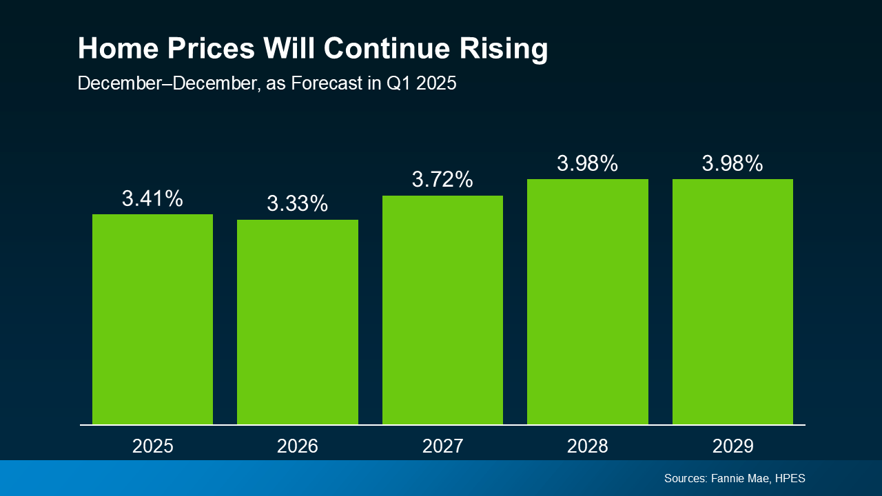 Each quarter, over 100 housing market experts weigh in for the Home Price Expectations Survey from Fannie Mae, and they consistently agree on one thing: nationally, home prices are expected to rise through at least 2029.