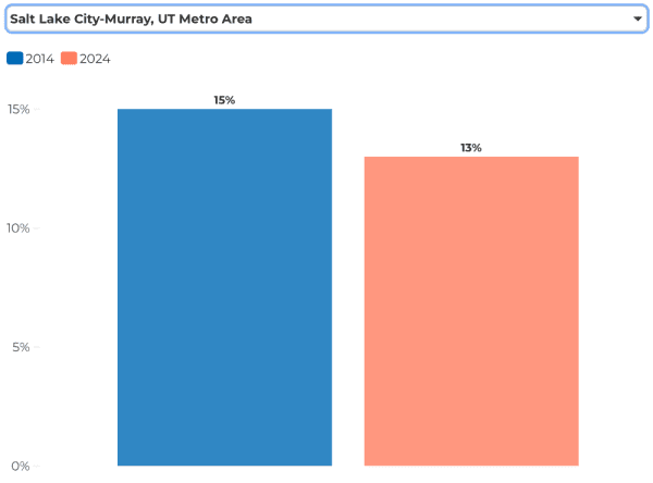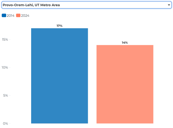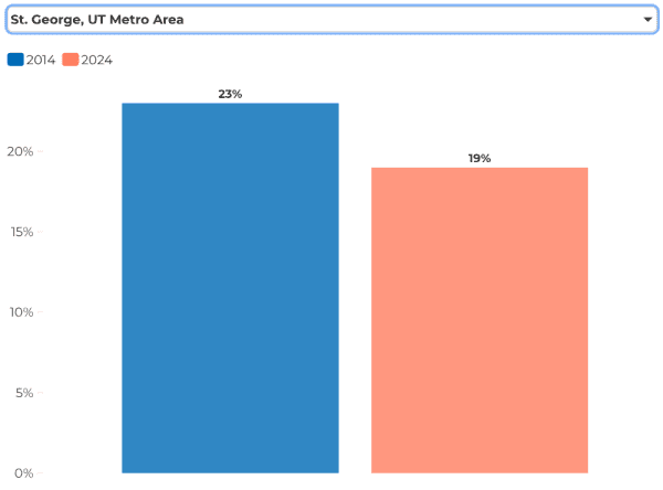While most metro areas have seen their share of single-family rentals decline, a small group of markets is moving in the opposite direction. Among the 250 largest metros, only about 8% have a higher share of single-family rentals today than a decade ago. Recent data shows that Columbia, Missouri; Springfield, Massachusetts; New Haven, Connecticut; Yakima, Washington; and Norwich, Connecticut are among the areas with gains.