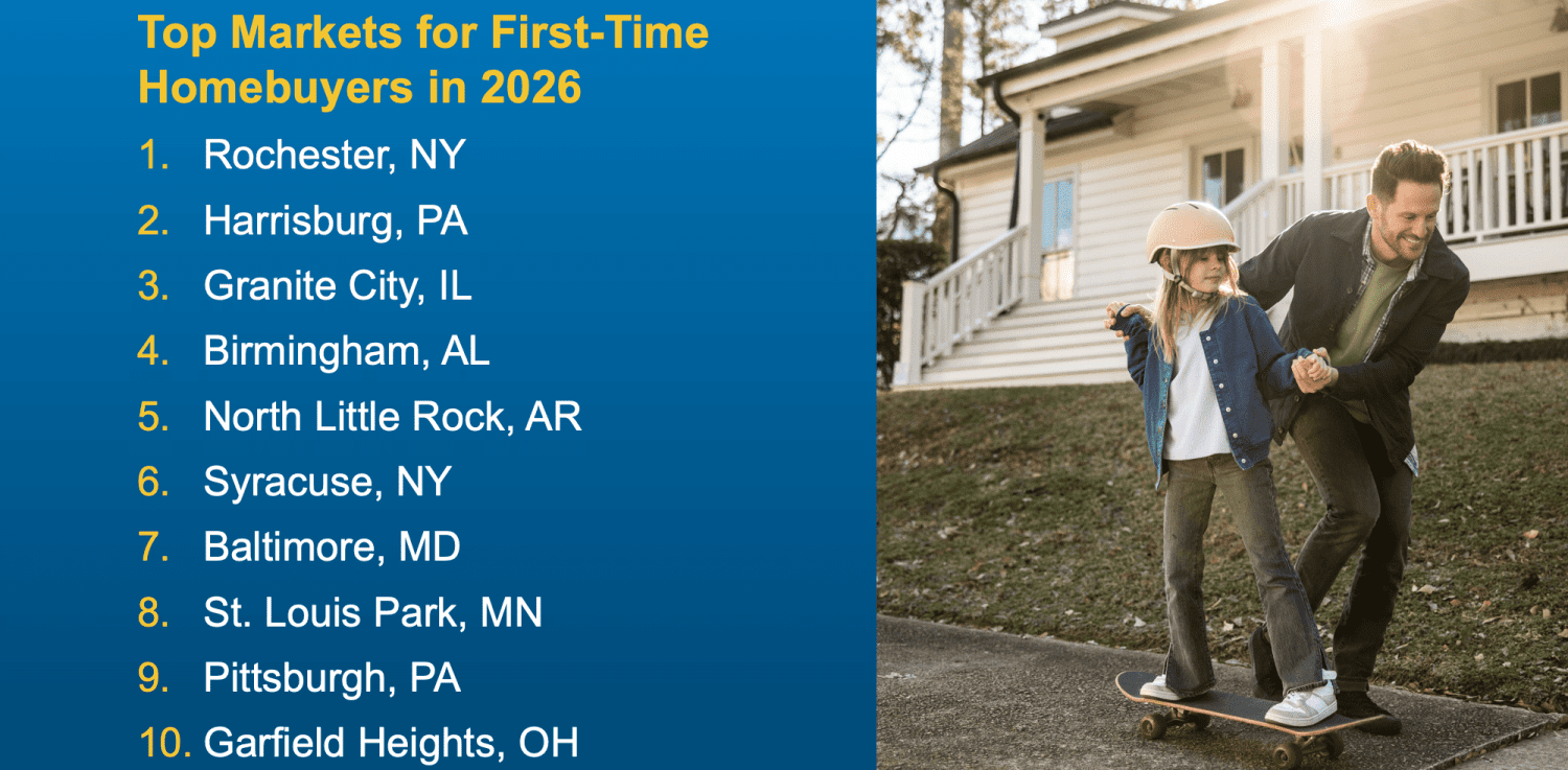 On the flip side, here’s a look at where buyers have the power – in particular, first-time buyers, since they’ve had the hardest time breaking into the market lately. The top metros where first-time buyers are expected to have better opportunities in 2026: