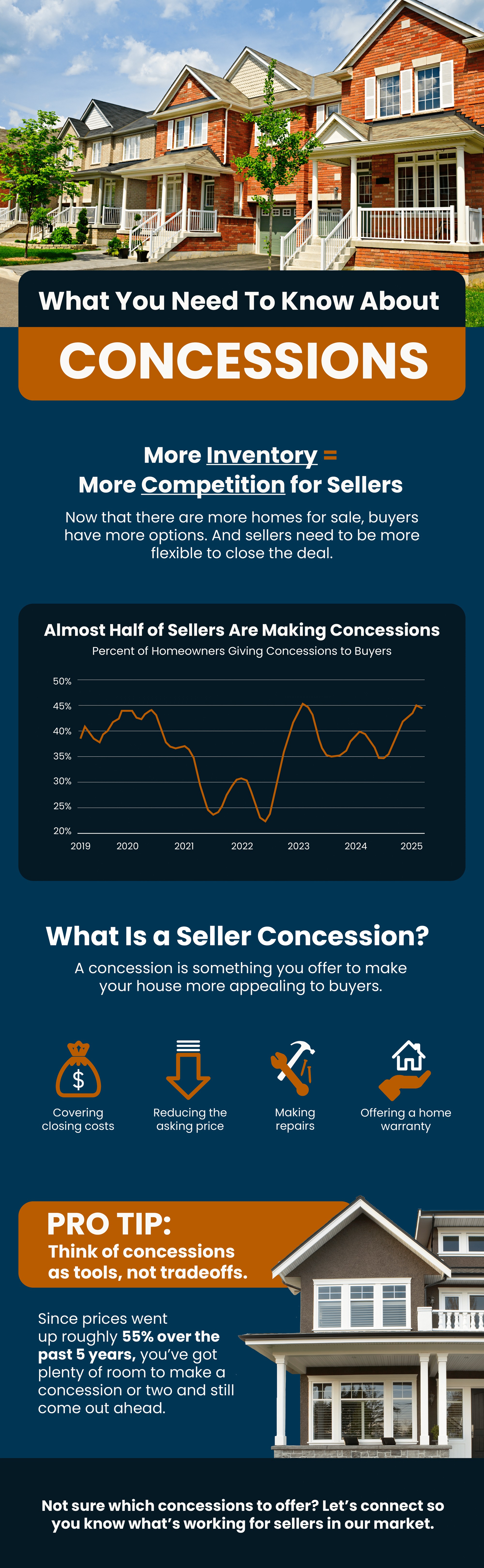 • That’s why almost half of homeowners are making some type of concession. This can include covering closing costs, paying for repairs, or dropping the price.