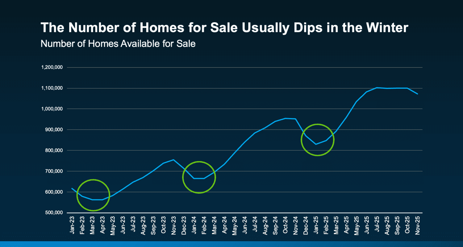 History shows the number of homes for sale tends to drop during the winter months. It’s a trend that’s predictable almost every year.