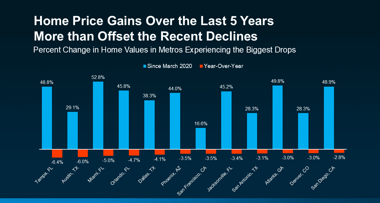 So, what’s that really mean? In most places, prices are on the rise, so this isn’t even a concern. But in the few metros where prices are cooling off a bit, the 5-year gains more than offset those small dips.