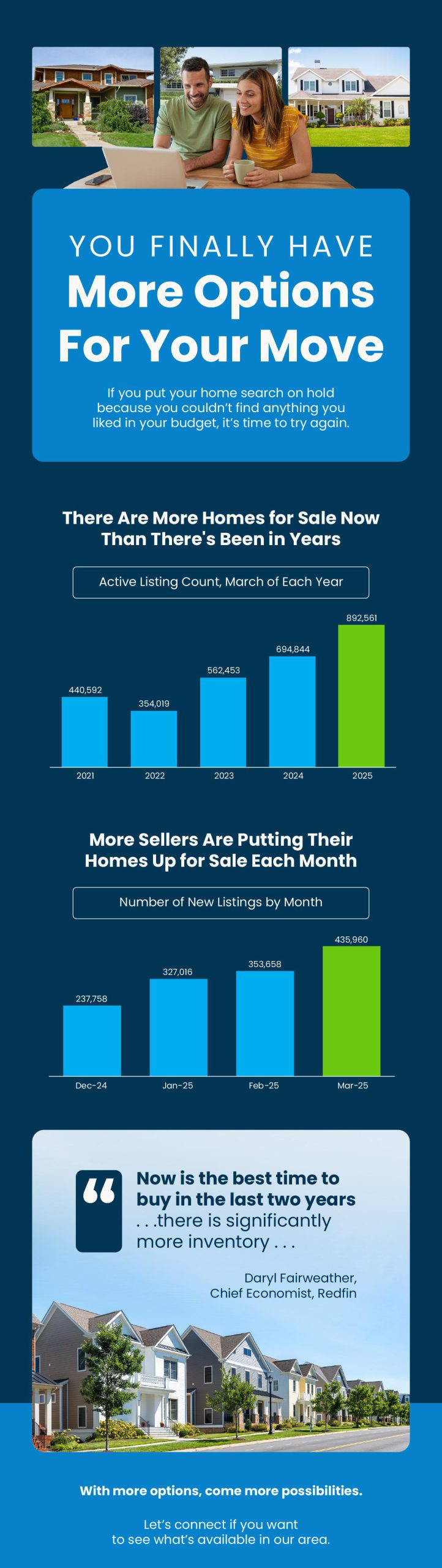 There’s a much wider selection of homes for sale, with more fresh listings hitting the market each month.